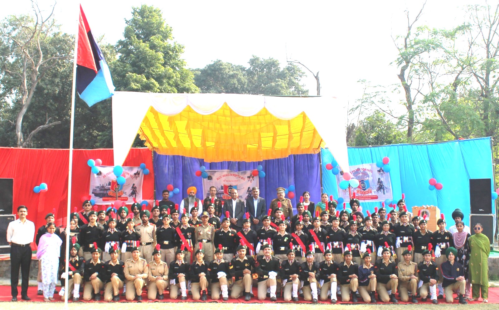 ਬਠਿੰਡਾ 5 , ਦਸੰਬਰ – ( ਰਾਵਤ ) : ਮਹਾਰਾਜਾ ਰਣਜੀਤ ਸਿੰਘ ਪੰਜਾਬ ਟੈਕਨੀਕਲ ਯੂਨੀਵਰਸਿਟੀ (ਐਮ.ਆਰ.ਐਸ.ਪੀ.ਟੀ.ਯੂ.), ਬਠਿੰਡਾ ਵੱਲੋਂ 78ਵਾਂ ਐਨ.ਸੀ.ਸੀ. ਸਥਾਪਨਾ ਦਿਵਸ ਬੜੇ ਉਤਸ਼ਾਹ ਅਤੇ ਦੇਸ਼ ਭਗਤੀ ਦੇ ਜੋਸ਼ ਨਾਲ ਐਥਲੈਟਿਕਸ ਗਰਾਊਂਡ ਵਿਖੇ ਮਨਾਇਆ ਗਿਆ। ਇਸ ਸਮਾਗਮ ਵਿੱਚ ਐਮ.ਆਰ.ਐਸ.ਪੀ.ਟੀ.ਯੂ. ਦੇ ਵਾਈਸ ਚਾਂਸਲਰ ਪ੍ਰੋ. ਸੰਜੀਵ ਕੁਮਾਰ ਸ਼ਰਮਾ ਮੁੱਖ ਮਹਿਮਾਨ ਵਜੋਂ ਸ਼ਾਮਲ ਹੋਏ। ਰਜਿਸਟਰਾਰ ਡਾ. ਗੁਰਿੰਦਰ ਪਾਲ ਸਿੰਘ ਬਰਾੜ, ਕੈਂਪਸ ਡਾਇਰੈਕਟਰ (ਜੀ.ਜ਼ੈਡ.ਐਸ.ਸੀ.ਸੀ.ਈ.ਟੀ.) ਡਾ. ਸੰਜੀਵ ਅਗਰਵਾਲ, ਡੀਨ ਵਿਦਿਆਰਥੀ ਭਲਾਈ ਡਾ. ਪਰਮਜੀਤ ਸਿੰਘ, ਪ੍ਰੋਫੈਸਰ ਇੰਚਾਰਜ (ਐਫ. ਐਂਡ ਪੀ.) ਡਾ. ਹਰੀਸ਼ ਗਰਗ, ਐਨ.ਸੀ.ਸੀ. ਅਫਸਰ ਲੈਫਟੀਨੈਂਟ ਵਿਵੇਕ ਅਤੇ ਸੀ.ਟੀ.ਓ. ਸਿਮਰਦੀਪ ਕੌਰ ਸਮੇਤ ਸੀਨੀਅਰ ਅਧਿਕਾਰੀ ਵੀ ਫੈਕਲਟੀ, ਸਟਾਫ, ਕੈਡੇਟ ਅਤੇ ਸਤਿਕਾਰਤ ਮਹਿਮਾਨਾਂ ਸਮੇਤ ਮੌਜੂਦ ਸਨ।